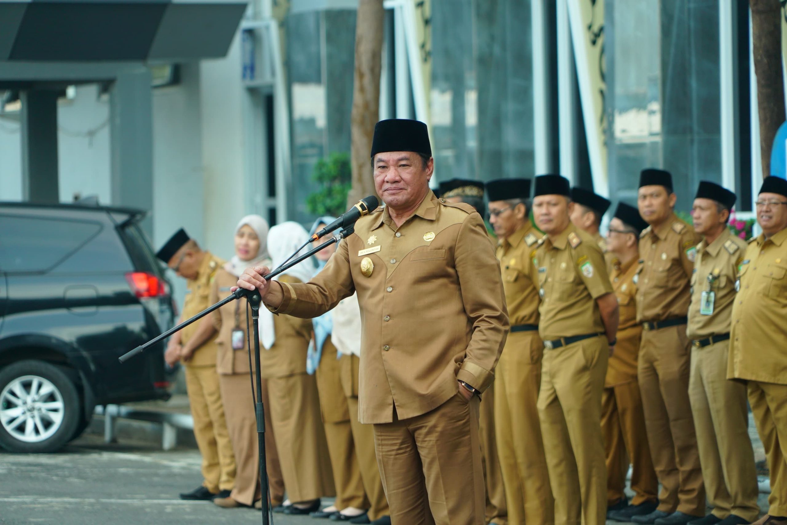 Bengkulu – Pelaksana Tugas (Plt) Gubernur Bengkulu, Rosjonsyah, memimpin apel pagi bersama seluruh kepala OPD dan ASN di lingkungan Pemerintah Provinsi Bengkulu pada Selasa (11/2) di lapangan parkir Pemprov Bengkulu.