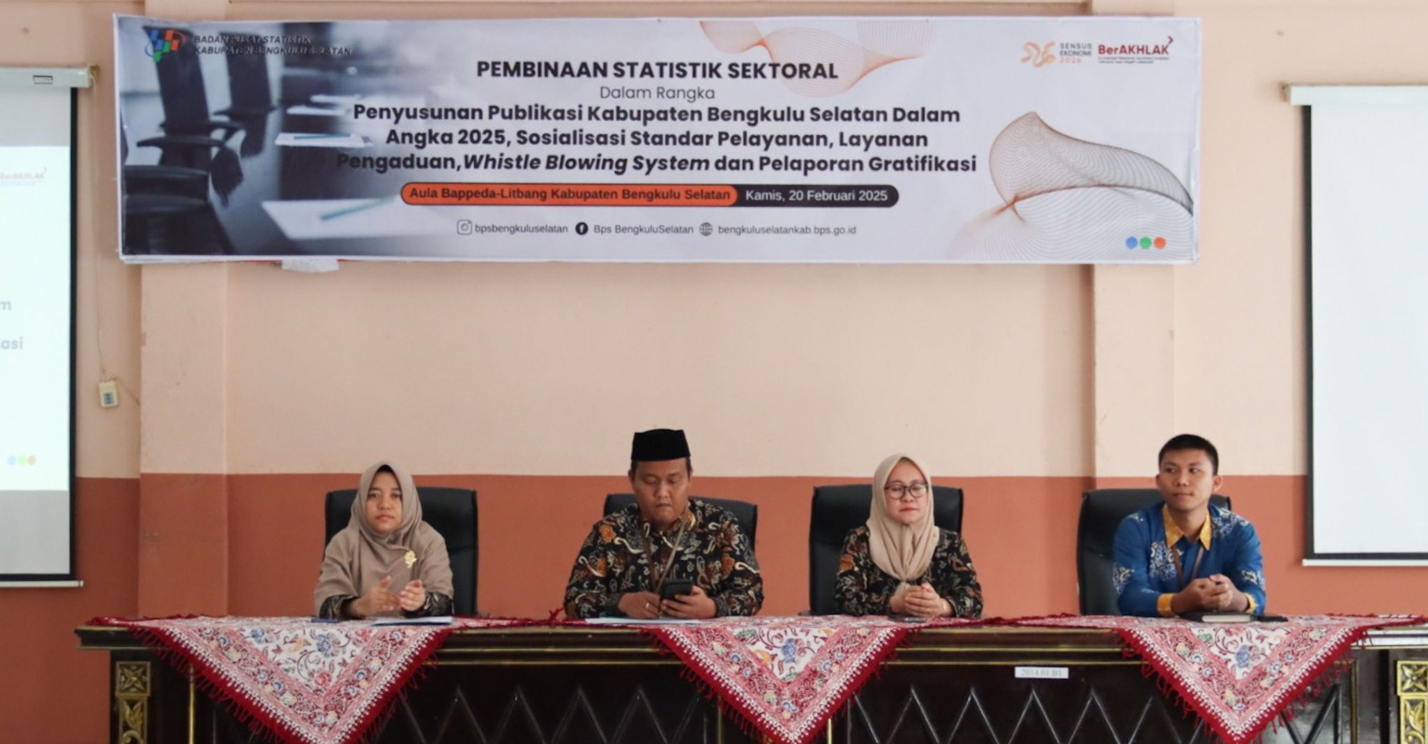 SentralNews, Bengkulu Selatan – Kegiatan Pembinaan Statistik Sektoral dalam rangka penyusunan publikasi Kabupaten Bengkulu Selatan Dalam Angka 2025, serta sosialisasi Standar Pelayanan, Layanan Pengaduan, Whistle Blowing System, dan Pelaporan Gratifikasi.