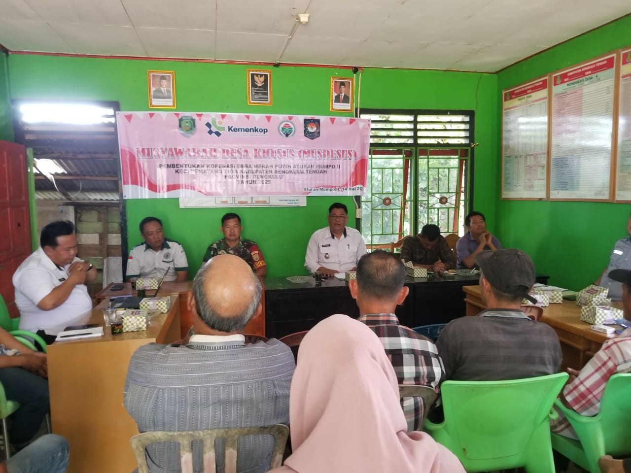 Bengkulu Tengah, Sentralnews.com – Aturan Mumpo II, Kecamatan Pematang Tiga, Kabupaten Bengkulu Tengah, Provinsi Bengkulu, pada hari ini, telah berlangsung Musyawarah Desa Khusus (Musdesus) 2025 yang bertujuan untuk membentuk Koperasi Merah Putih. Acara ini dihadiri oleh berbagai pihak penting, termasuk Kepala Desa Badri Andi Rata, Ketua Badan Permusyawaratan Desa (BPD) Sabirinsah, Camat Pematang Tiga Mades Moesa, M.AP, serta perwakilan dari Babinsa dan pendamping desa dari Kecamatan Pematang Tiga.