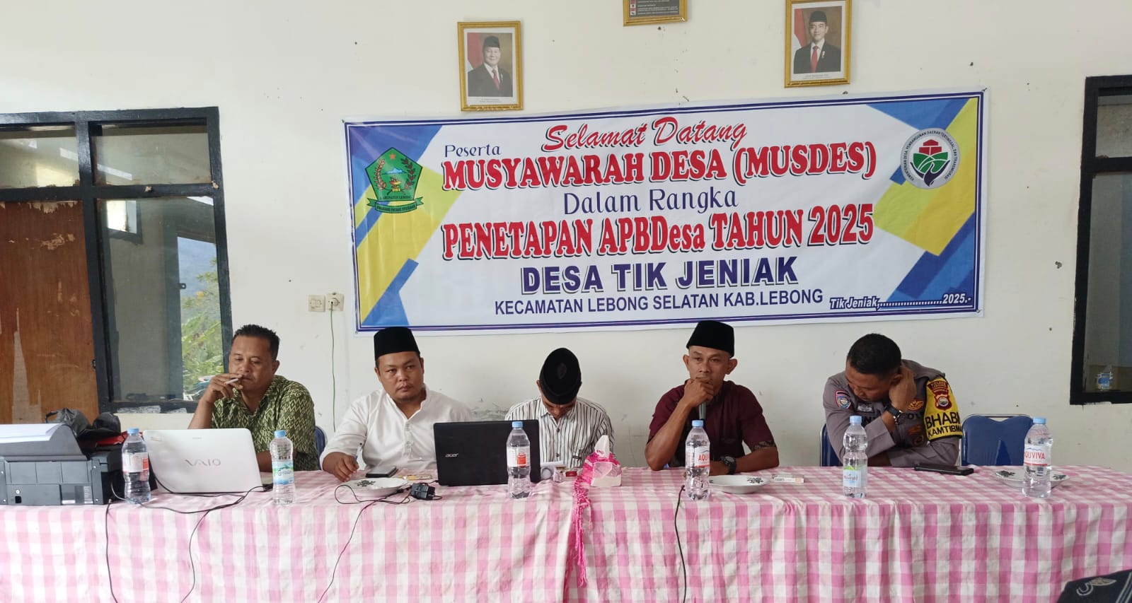 Lebong, Sentralnews.com – Pemerintah Desa Tik Jeniak melaksanakan Musyawarah Desa (Musdes) dalam rangka penyusunan Anggaran Pendapatan dan Belanja Desa (APBDes) Tahun Anggaran 2025.