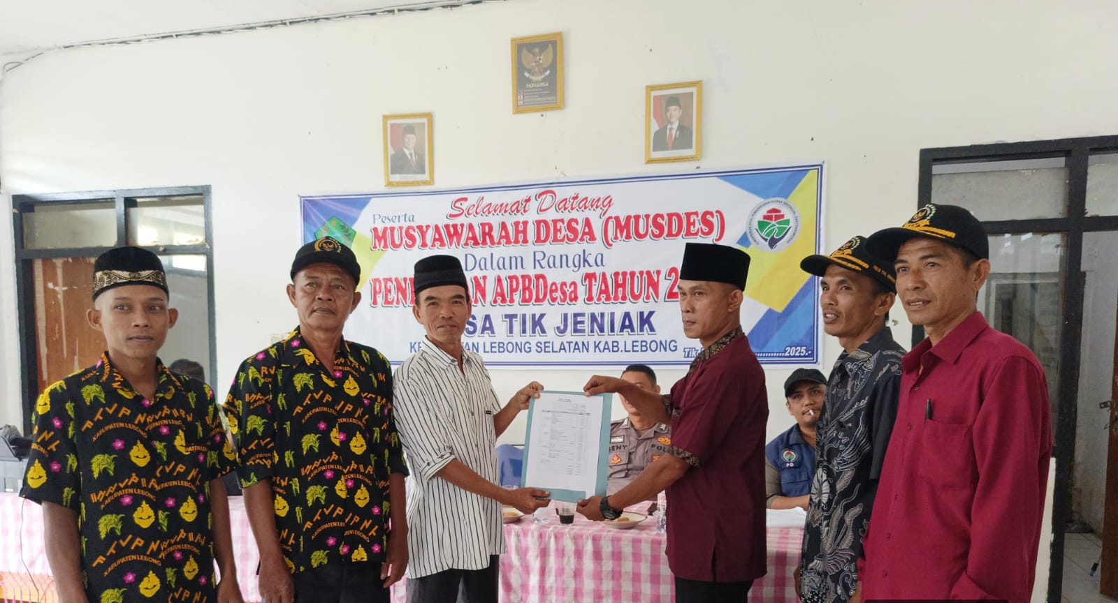 Lebong, Sentralnews.com – Pemerintah Desa Tik Jeniak melaksanakan Musyawarah Desa (Musdes) dalam rangka penyusunan Anggaran Pendapatan dan Belanja Desa (APBDes) Tahun Anggaran 2025.