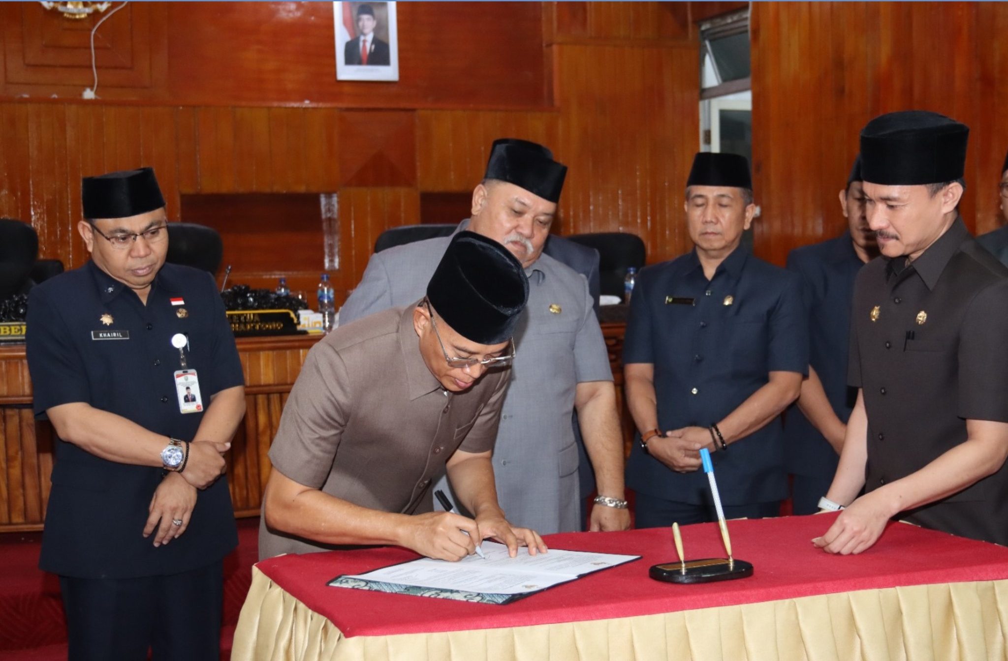Rapat paripurna tersebut dipimpin Ketua DPRD,Juli Hartono, S.E, Wakil Ketua 1, Holman, SE dan Wakil Ketua II,Dodi Martian, S.Hut, MM dan diikuti Anggota DPRD dari semua unsur fraksi.