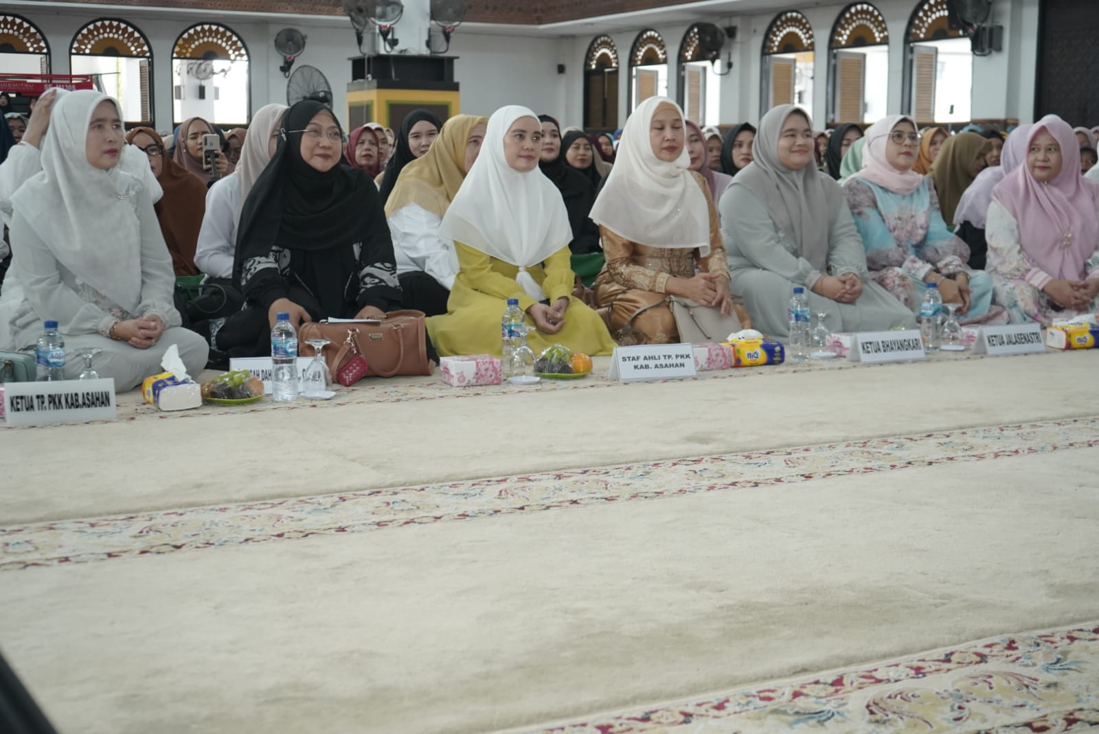 Tampak hadir Danlanal TBA, mewakili Kajari Asahan, mewakili Dandim 0208/Asahan, mewakili Kapolres Asahan, Sekretaris Daerah Kabupaten Asahan, para Asisten, Staf Ahli Bupati Asahan, OPD, Camat se-Kabupaten Asahan, ASN di Lingkungan Pemkab Asahan, Ketua TP. PKK Kabupaten Asahan, Ketua DWP Kabupaten Asahan, Ketua MUI, Ketua Imtaq Kabupaten Asahan, jamaah pengajian dan tamu undangan lainnya.(Khalis)