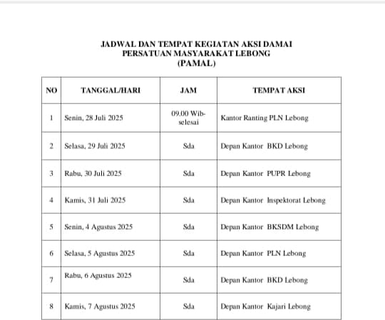 Menurutnya, aksi ini bukanlah gertakan semata. PAMAL bertekad melakukan “bersih-bersih” menyeluruh, menuntut keseriusan Pemerintah Kabupaten Lebong di bawah kepemimpinan Bupati Azhari dan Wakil Bupati Bambang dalam menuntaskan berbagai persoalan krusial, mulai dari era Dalhadi Umar, Rosjonsyah, Kopli Ansori, hingga kini.