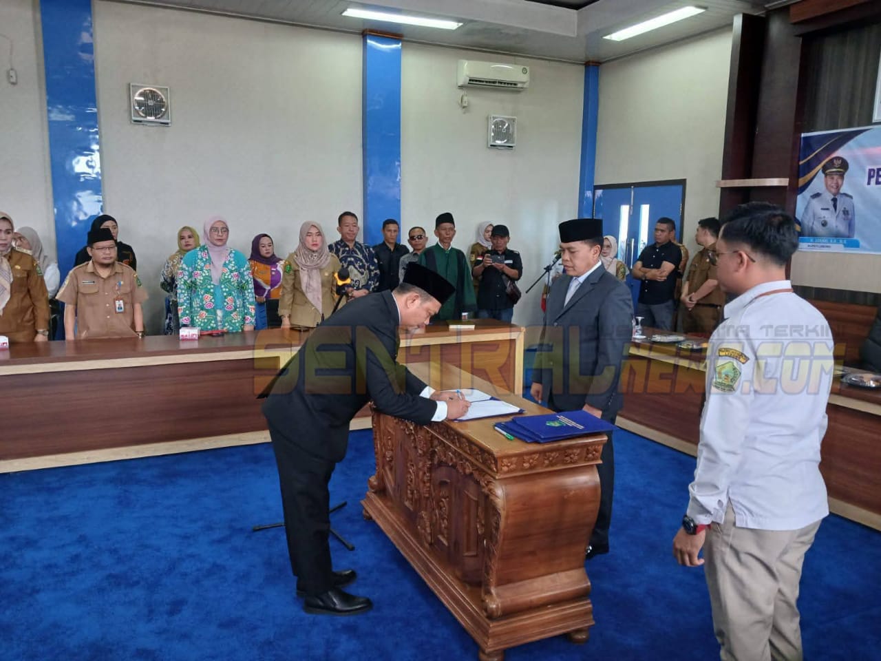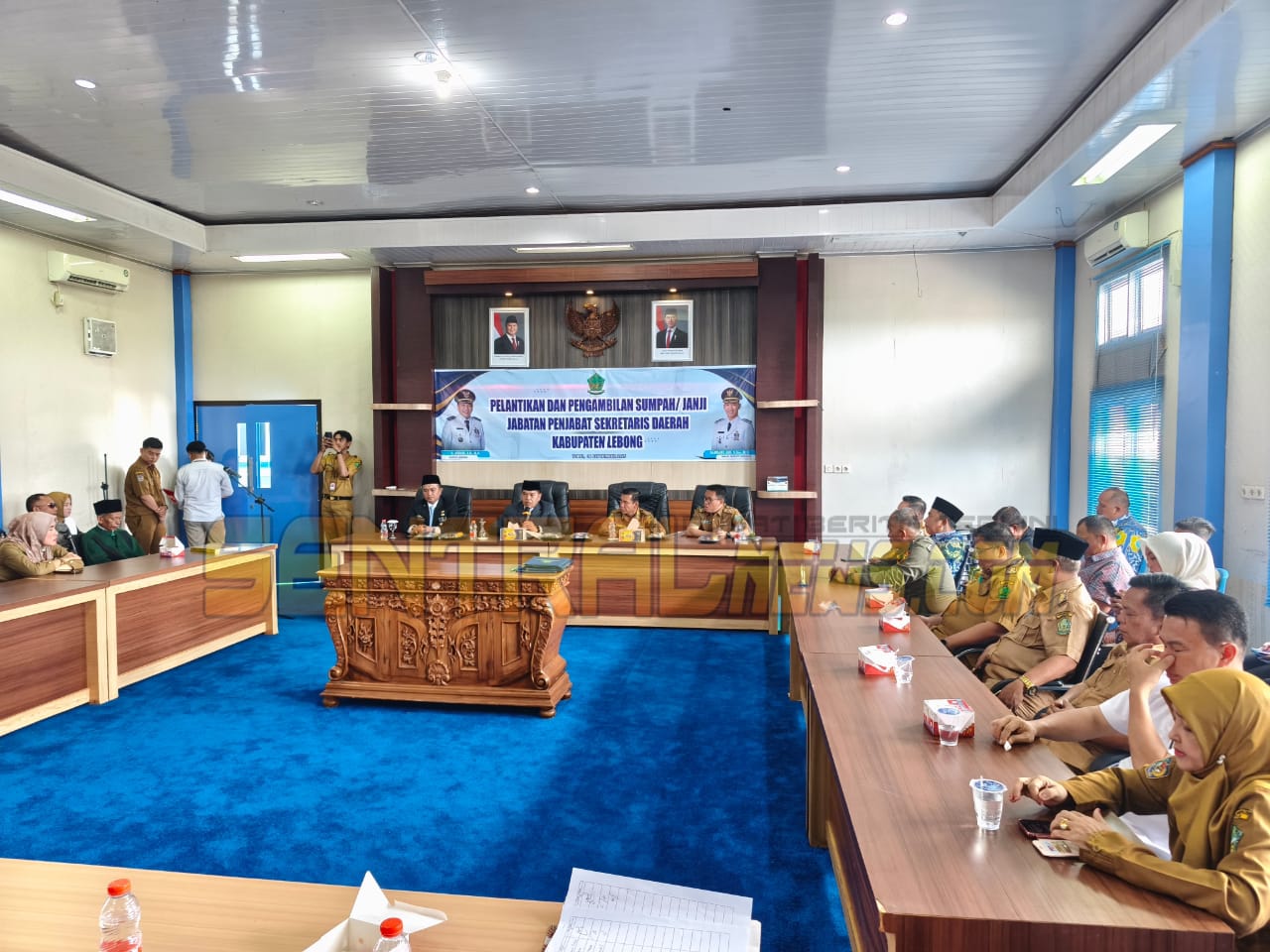Lebong, Sentralnews.com – Pemerintah Kabupaten (Pemkab) Lebong kembali melakukan penyegaran pada posisi strategis di jajaran birokrasi. Bertempat di Graha Bina Praja, Bupati Lebong H. Azhari, SH, MH melantik Dr. H. Syarifuddin, M.Si sebagai Penjabat Sekretaris Daerah (Pj Sekda) Lebong, Senin (8/9/2025).