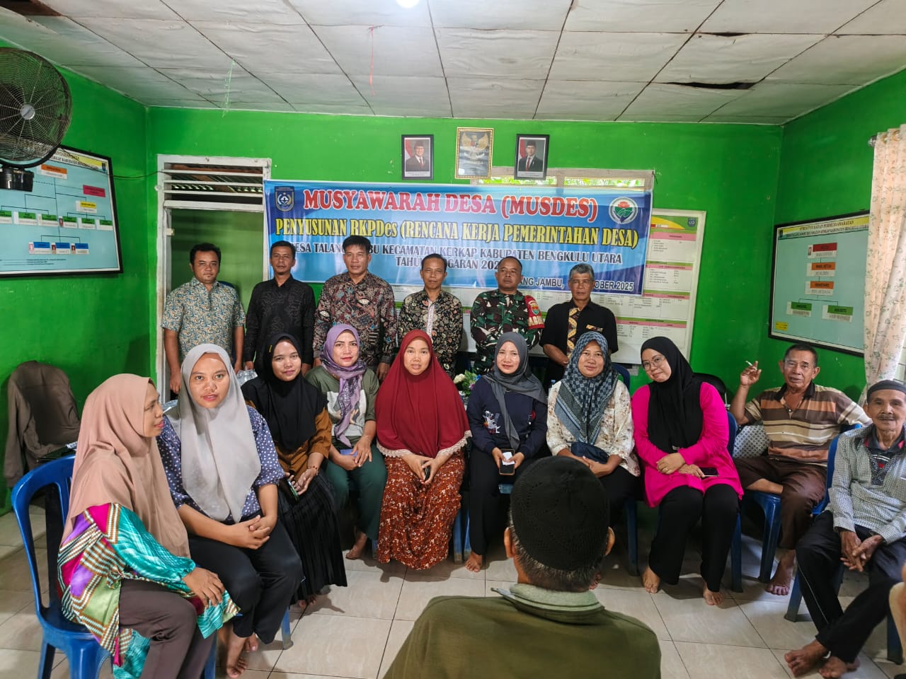 Bengkulu Utara, Sentralnews.com – Pemerintah Desa Talang Jambu, Kecamatan Kerkap, Kabupaten Bengkulu Utara, menggelar Musyawarah Desa (Musdes) dalam rangka penyusunan Rencana Kerja Pemerintah Desa (RKPDes) Tahun Anggaran 2026, pada Rabu (30/10/2026), bertempat di Kantor Desa Talang Jambu.