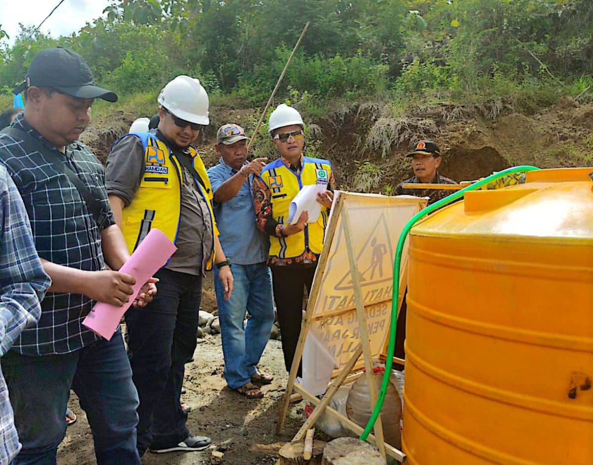 Saat peninjauan berlangsung, H. Beky juga mencermati sejumlah titik rawan longsor di sekitar proyek. Kondisi tanah yang labil, menurutnya, harus segera diperkuat agar tidak membahayakan pengguna jalan.