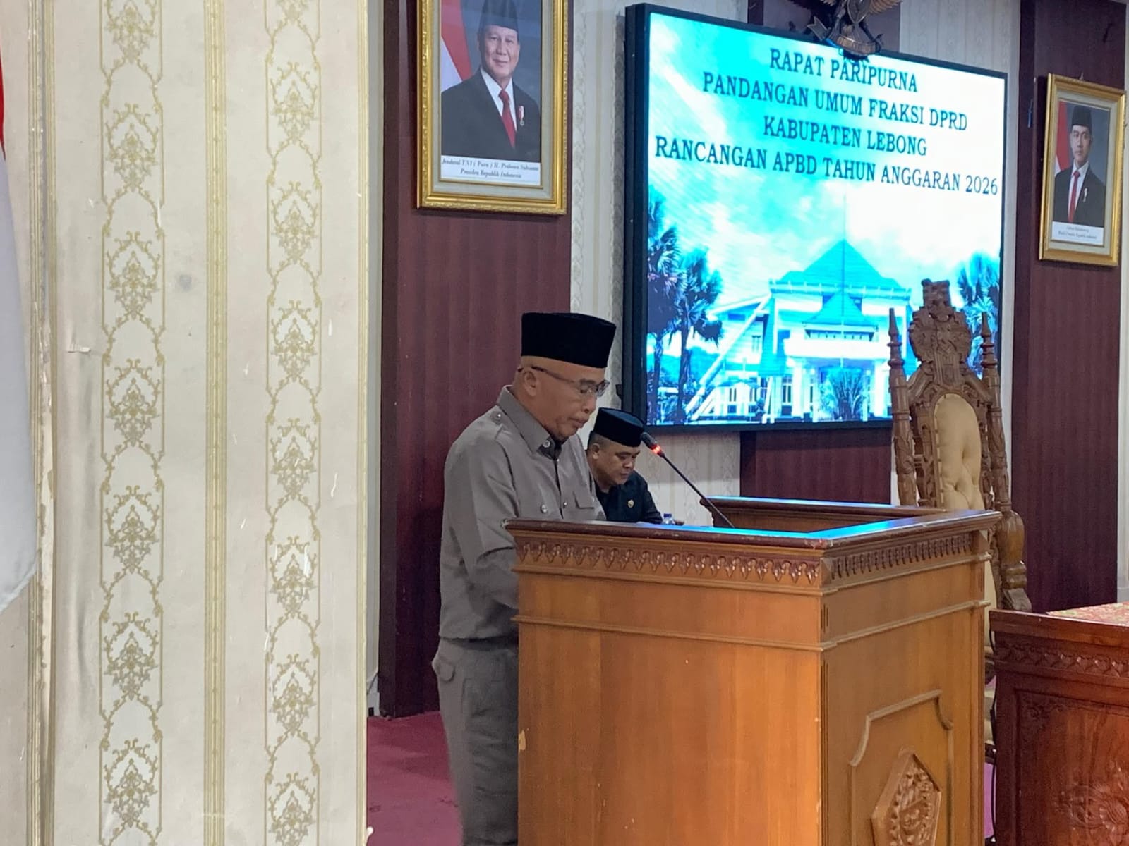 Dalam Rapat Paripurna DPRD Kabupaten Lebong tersebut, dengan agenda Penyampaian Pandangan Umum Fraksi-Fraksi dan Jawaban Eksekutif terhadap Rancangan APBD Tahun Anggaran 2026, yang digelar di Ruang Rapat Paripurna DPRD, Kamis (06/11/2025).