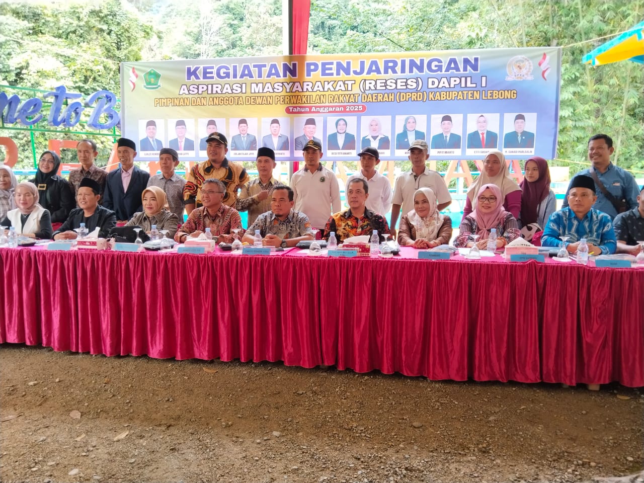 Lebong. Sentralnews.com – Anggota Dewan Perwakilan Rakyat Daerah (DPRD) Kabupaten Lebong dari Daerah Pemilihan (Dapil) 1 menggelar kegiatan Reses masa sidang III tahun 2025, kegiatan penjaringan aspirasi masyarakat ini dipusatkan di Desa Embong, Kecamatan Uram Jaya, tepatnya di kawasan wisata Air Terjun Paliak, dan dihadiri oleh seluruh 13 anggota DPRD Dapil 1, yang dipimpin langsung oleh Ketua DPRD Lebong, Carles Ronsen, S.Sos., Sabtu (8/11/2025).
