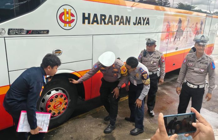 Satu per satu bus diperiksa mulai dari ban, lampu, wiper, klakson, lampu sein, APAR, alat pemecah kaca, hingga sistem pengereman. Tidak hanya kendaraan, para sopir dan awak bus juga diwajibkan menjalani pemeriksaan kesehatan dan tes urine langsung di lokasi. Semua dilakukan demi menjamin keselamatan perjalanan masyarakat.