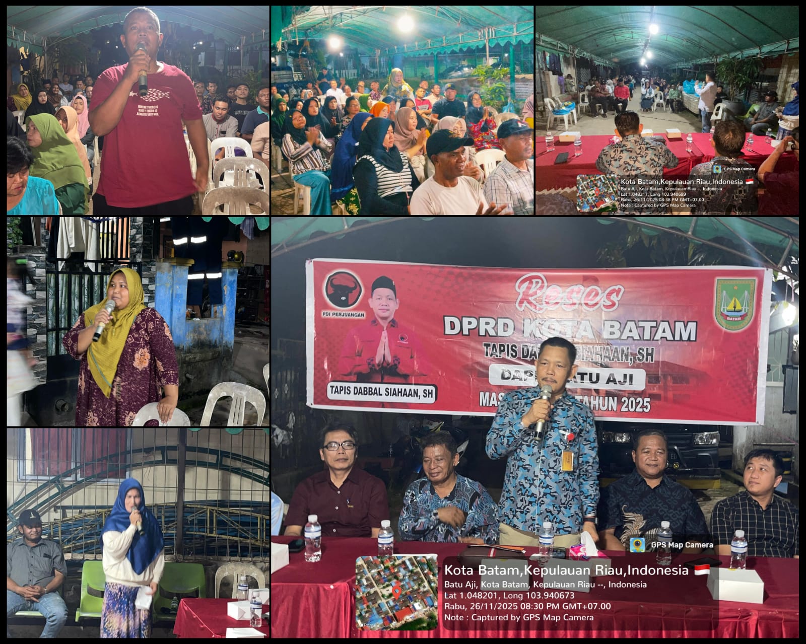 Batam, Sentralnews.com – Keluhan mengenai pelayanan BPJS Kesehatan dan praktik perekrutan kerja yang tidak sehat mendominasi Reses Masa Sidang I DPRD Kota Batam yang digelar Anggota Fraksi PDI Perjuangan, Tapis Dabbal Siahaan, SH, di Perumahan Fanindo, Rabu (26/11/2025) malam.