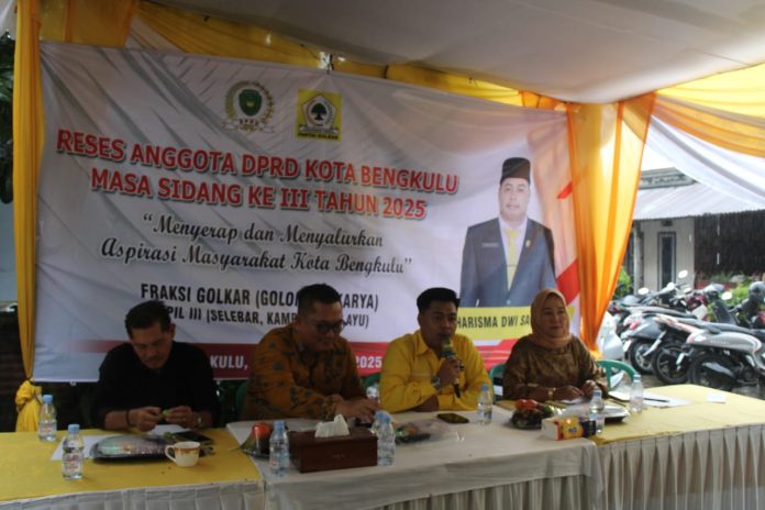Bengkulu, Sentralnews.com – Sejumlah usulan diserap oleh Anggota DPRD Kota Bengkulu termuda asal Fraksi Partai Golkar, Kharisma dalam acara Reses Masa Persidangan ke-III tahun 2025, Minggu (7/11) bertempat di kelurahan Pagar Dewa Kota Bengkulu.