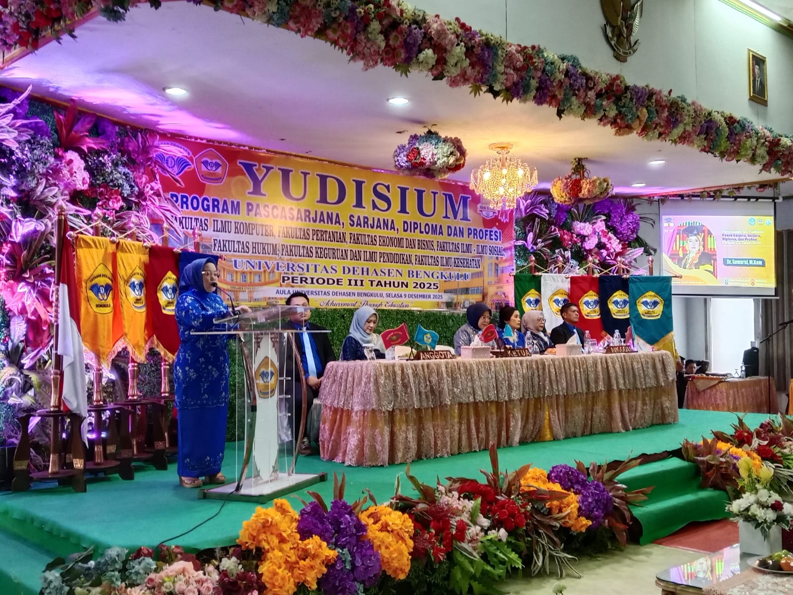 Bengkulu, Sentralnews.com – Universitas Dehasen (Unived) Bengkulu menggelar Yudisium Program Pascasarjana, Sarjana, Diploma, dan Profesi di aula kampus, Selasa (9/12). Kegiatan ini melibatkan tujuh fakultas sekaligus, yakni Fakultas Ilmu Komputer, Fakultas Pertanian, Fakultas Ekonomi dan Bisnis, Fakultas Ilmu-Ilmu Sosial, Fakultas Hukum, Fakultas Keguruan dan Ilmu Pendidikan (FKIP), serta Fakultas Ilmu Kesehatan. Acara turut dihadiri Pembina Yayasan Bando Amin.