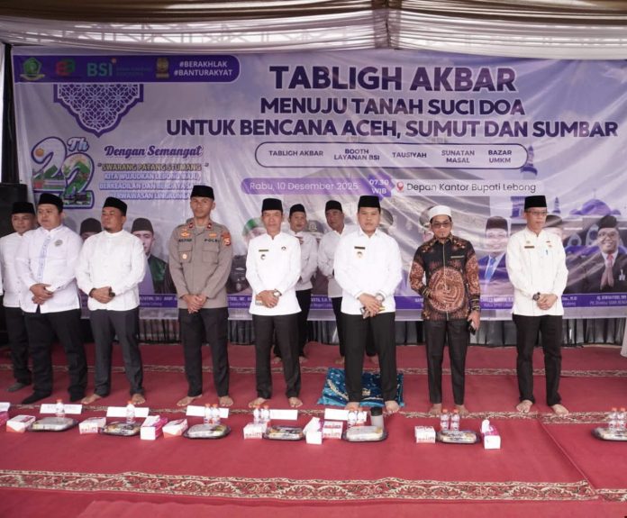 Acara Tabligh Akbar yang digelar di Jalan Dua Jalur depan Kantor Bupati Lebong tersebut dipadati ribuan jamaah dari berbagai wilayah. Penceramah Ustadz Ucay hadir menyampaikan pesan spiritual yang menggugah dengan tema “Menuju Tanah Suci dan Doa Untuk Bencana Aceh, Sumut, dan Sumbar.”