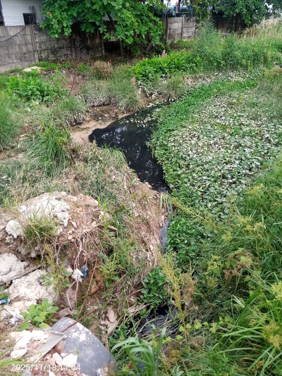 Hasil penelusuran tim media di lokasi menemukan material cair diduga limbah Bahan Berbahaya dan Beracun (B3) dibuang ke saluran drainase belakang pabrik. Limbah itu diduga berasal dari sisa proses produksi daur ulang plastik bekas impor.