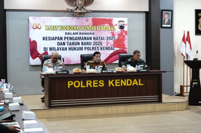Kendal, Sentralnews.com – Polres Kendal menggelar rapat koordinasi lintas sektoral dalam rangka kesiapan pengamanan perayaan Natal 2025 dan Tahun Baru 2026 (Nataru) di wilayah hukum Polres Kendal. Kegiatan berlangsung di Aula Tribrata Polres Kendal, Kamis (18/12/2025) pagi, dan dihadiri unsur Forkopimda, TNI, instansi penegak hukum, OPD, hingga jajaran kepolisian.