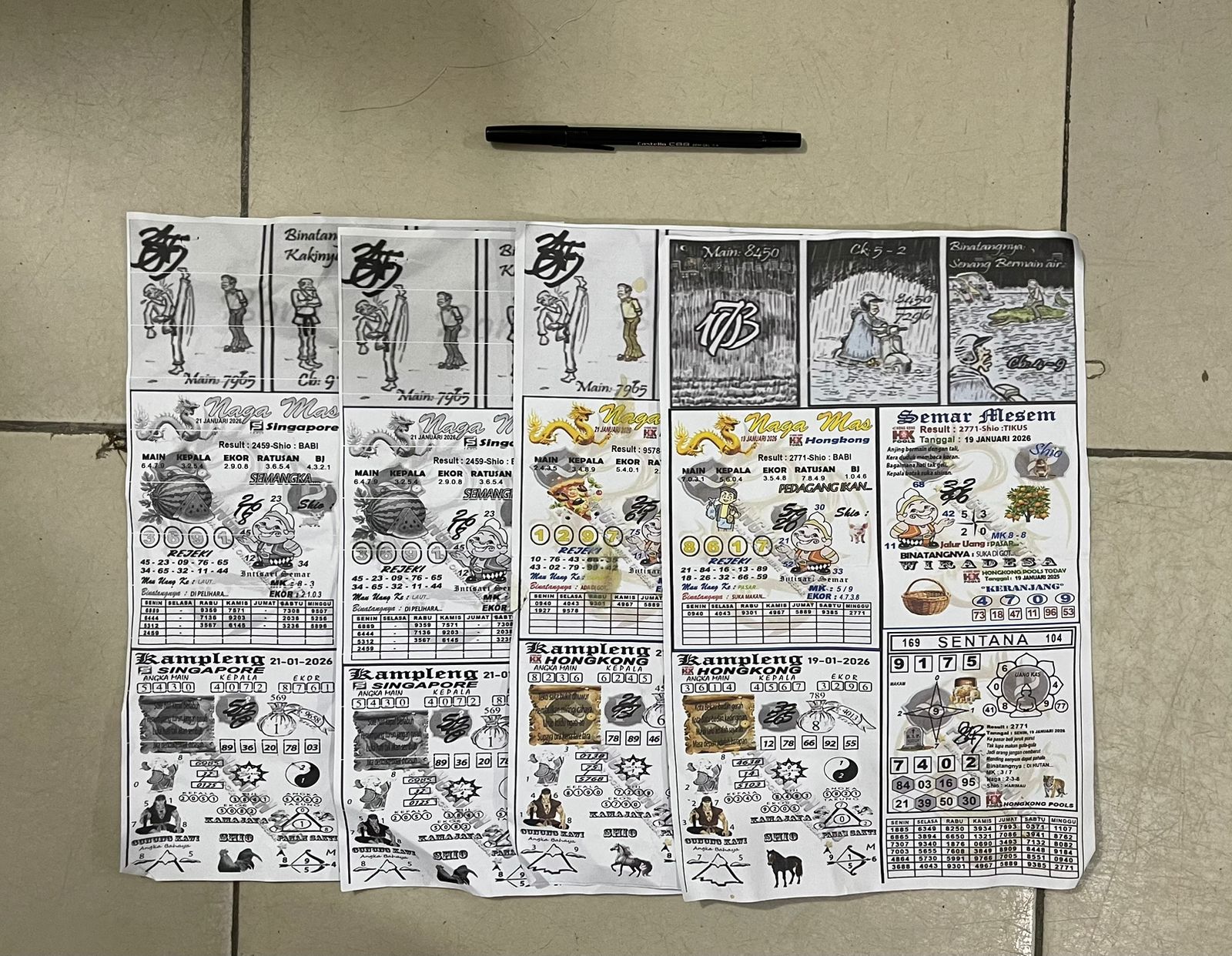 Saat dilakukan penangkapan, petugas turut mengamankan sejumlah barang bukti yang diduga kuat berkaitan dengan aktivitas perjudian, di antaranya uang tunai sebesar Rp55.000, satu unit telepon genggam Android merek Vivo warna hitam yang berisi catatan pembelian nomor tebakan dan daftar nomor keluar, empat lembar kertas kode tebakan angka, serta satu buah pulpen.