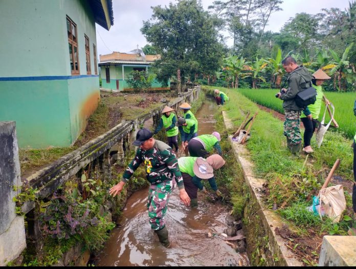 Gotong Royong, Anggota Satgas TMMD dan Warga Kompak Bersihkan Parit