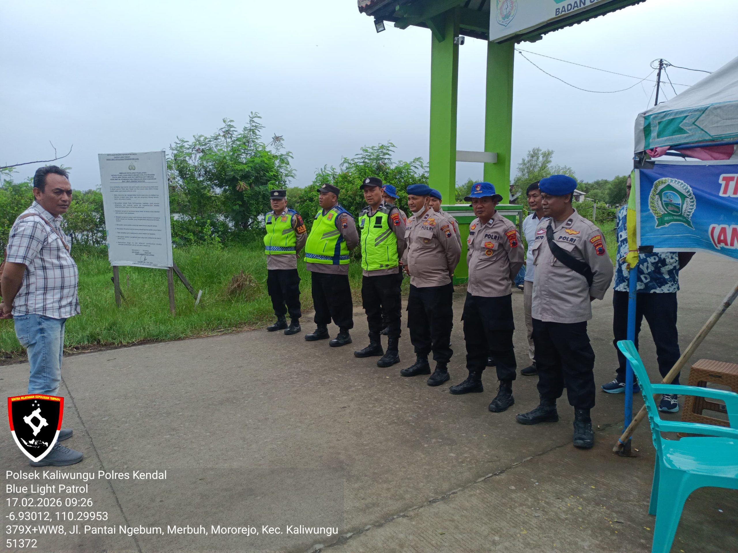 Kendal, Sentral news.com — Polsek Kaliwungu melaksanakan patroli di objek wisata Pantai Ngebum, Desa Mororejo, Kecamatan Kaliwungu, dan komplek Makam Sunan Katong area Jabal Nur, Desa Protomulyo, Kecamatan Kaliwungu Selatan, Kabupaten Kendal, Selasa (17/2/2026) pukul 09.00–10.30 WIB. Kegiatan ini dilakukan untuk menjaga keamanan dan ketertiban masyarakat di wilayah hukum Polsek Kaliwungu.