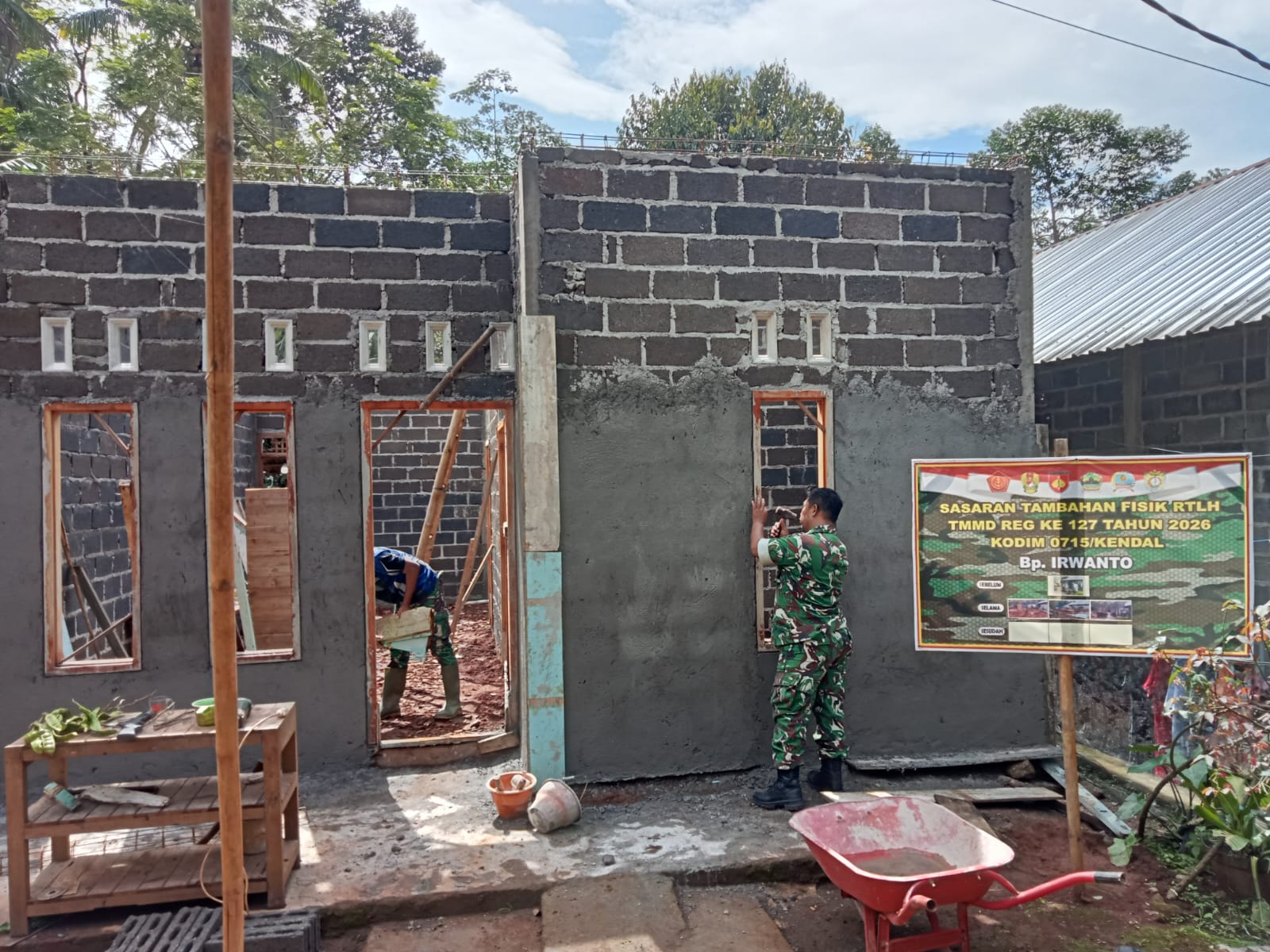 Kendal, Sentralnews.com – Sasaran fisik TMMD selain Jalan adalah rehab sejumlah 5 unit rumah tak layak huni milik warga desa Gedong yang pemiliknya di kategorikan sebagai warga kurang mampu. Semua penerima sudah di pastikan memenuhi kriteria sebagai penerima bantuan yang pengerjaan di laksanakan oleh anggota satgas TMMD regular ke 127 Kodim Kendal.