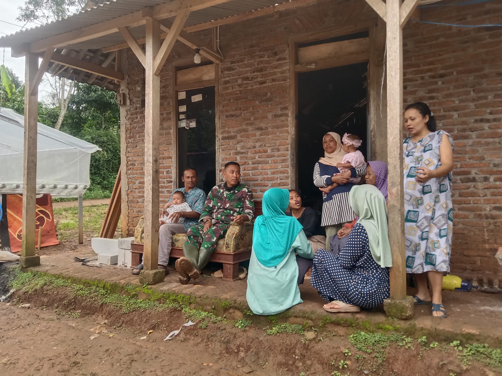 Hal tersebut seperti yang terjadi saat serda Saefudin anggota dari yon zipur 4 saat anjang sana di rumah salah satu keluarga di dusun Tempuran Desa Gedong. “Pada awalnya kami sering bertegur sapa dengan warga, kemudian kami bertamu ke rumah warga”, cerita serda Saefudin.