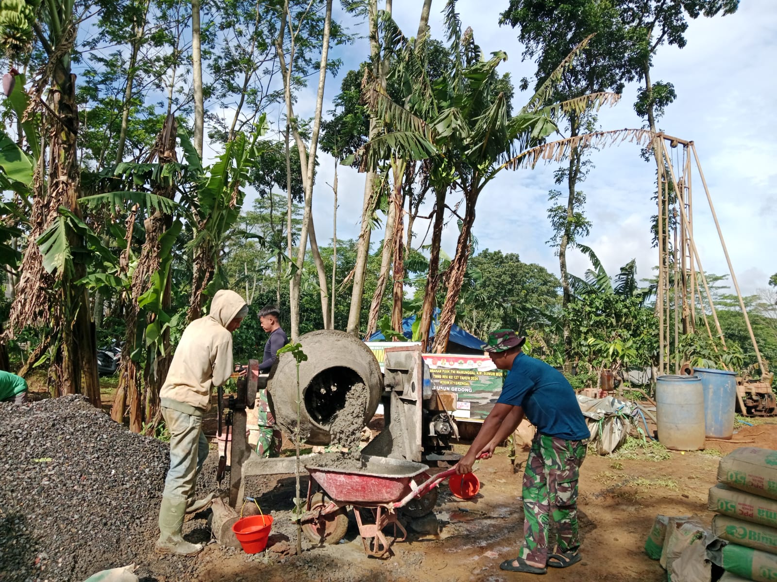 Kendal,Sentralnews.com – Semangat kebersamaan antara warga Desa Gedong dan prajurit TNI kembali terlihat dalam pelaksanaan TNI Manunggal Membangun Desa (TMMD) Reguler ke-127 Kodim 0715/Kendal. Kali ini, sasaran fisik berupa pembangunan tiang toren untuk penampungan air dari sumur bor tengah digarap dengan penuh antusiasme.