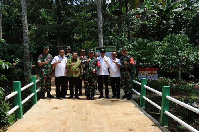 Acara simbolis penyerahan hasil Pembangunan jembatan program TMMD di tandai dengan peninjauan oleh danrem 073/Makutarama Kolonel Arm Ezra Nathanael di dampingi segenap jajaran forkompimda dan kepala desa Gedong, Rabu, (11/03/26)..