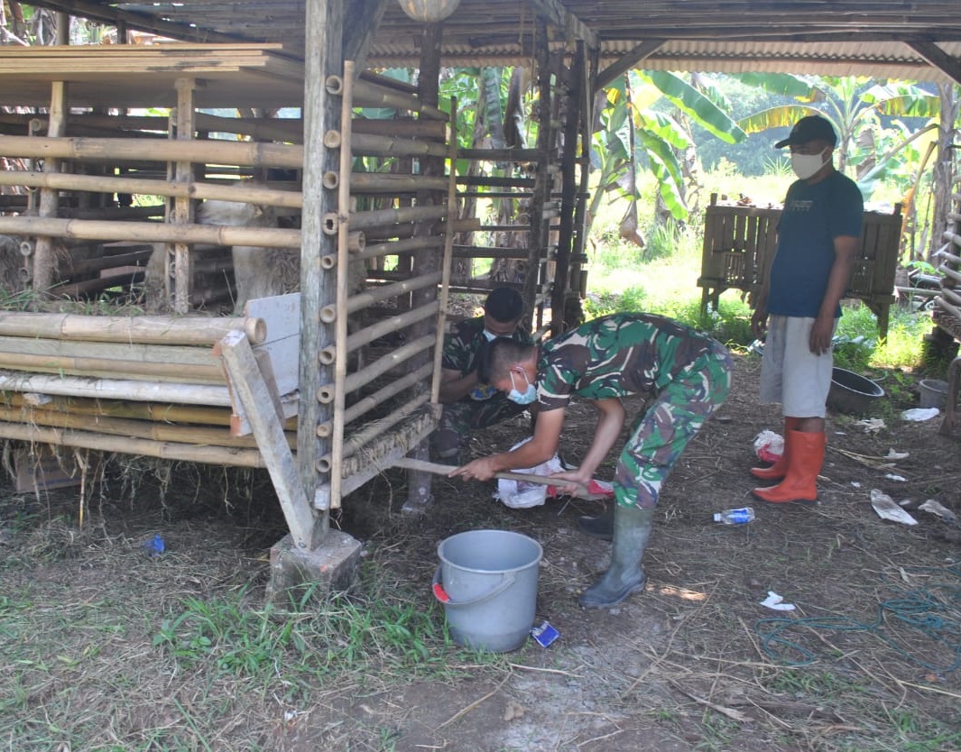 Warga : Terimakasih Pak TNI Telah Membatu Saya Membersihkan dan Merapikan Kandang Ternak Kambing Saya
